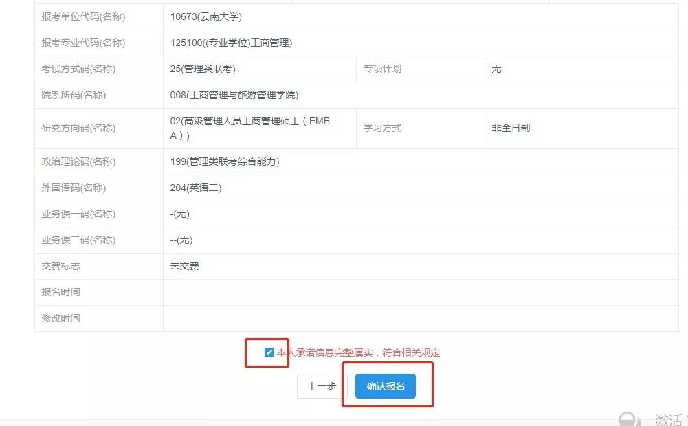 19、核对填报信息,确认信息无误后,选择“本人承诺信息完整属实,符合相关规定”,点击“确认报名”。