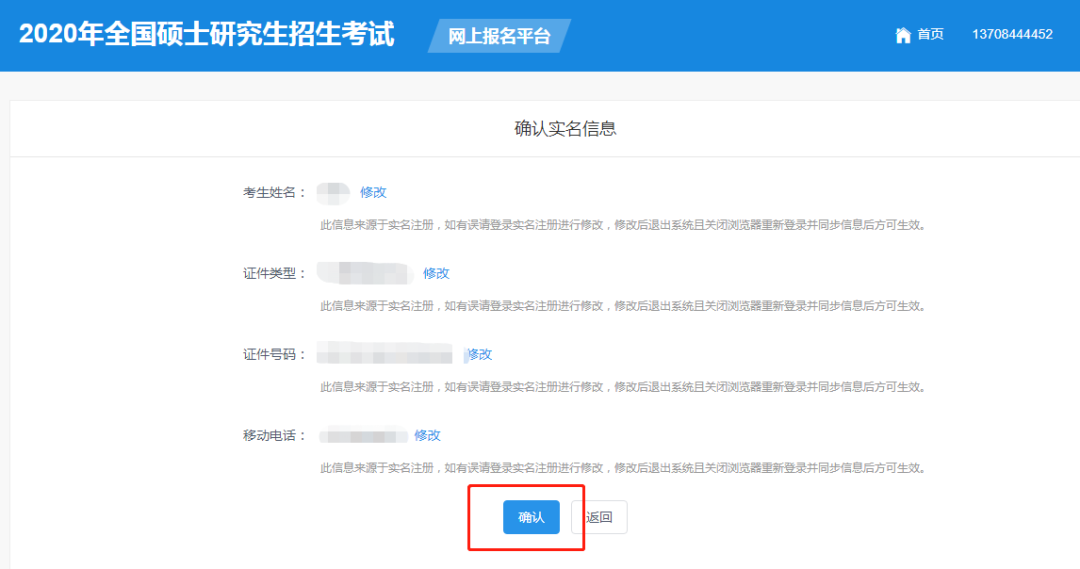 14、再次确认考生信息,信息无误后点击“确认”